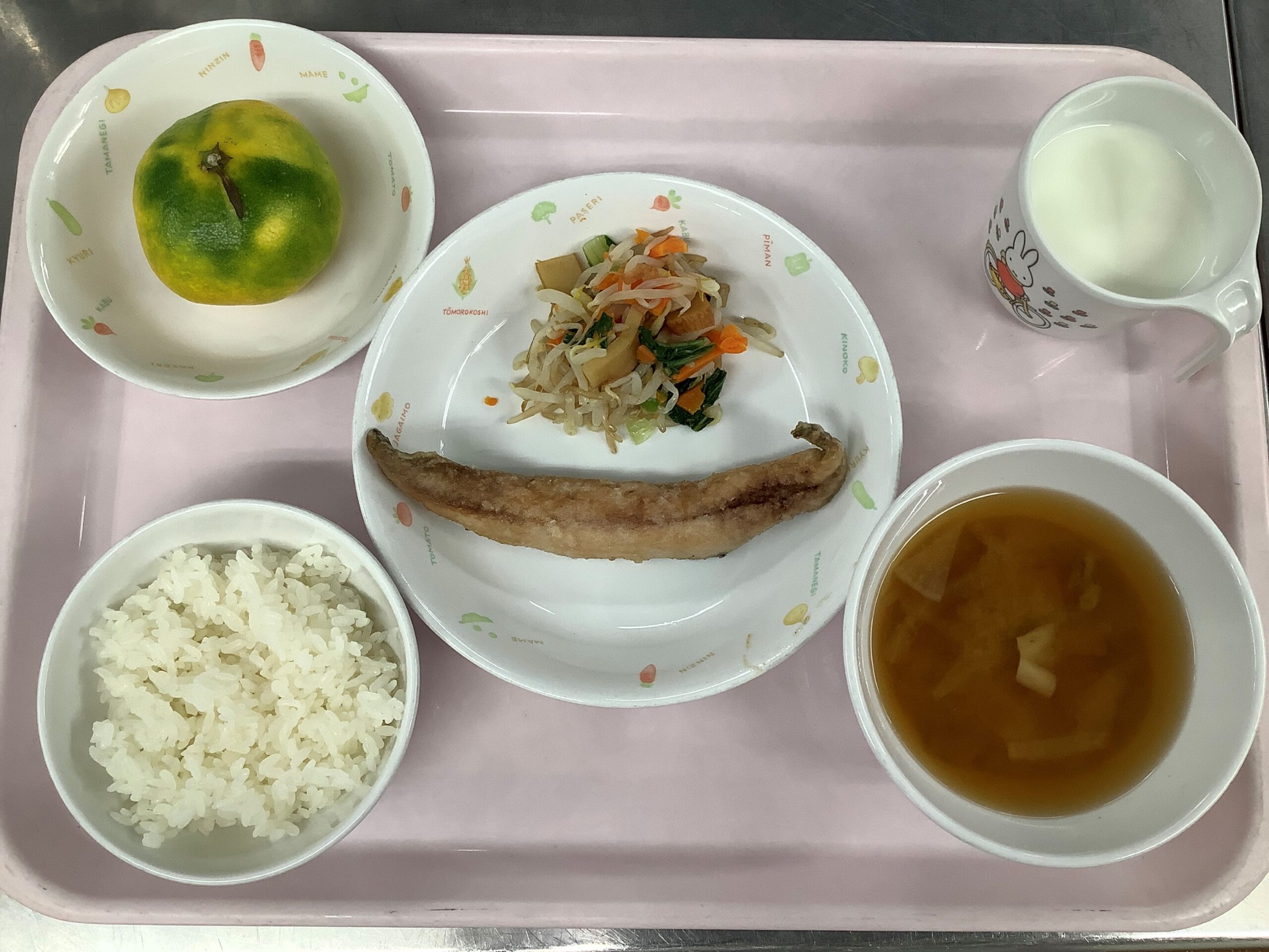 青梗菜とさつま揚げの煮浸し 田舎汁 みかん