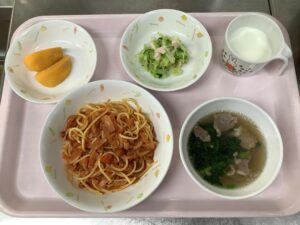 12月5日 ツナとトマトのスパゲッティ チキンサラダ