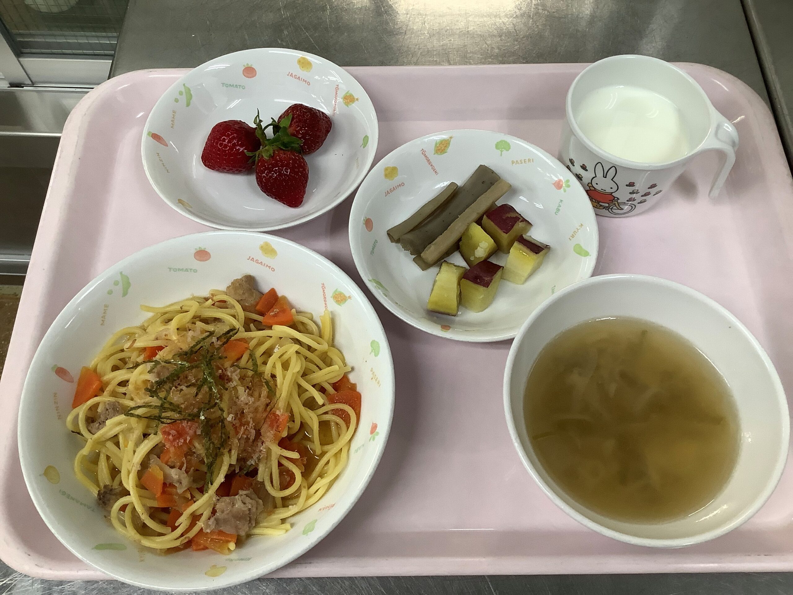 さつま芋のバター煮 ワンタンスープ いちご