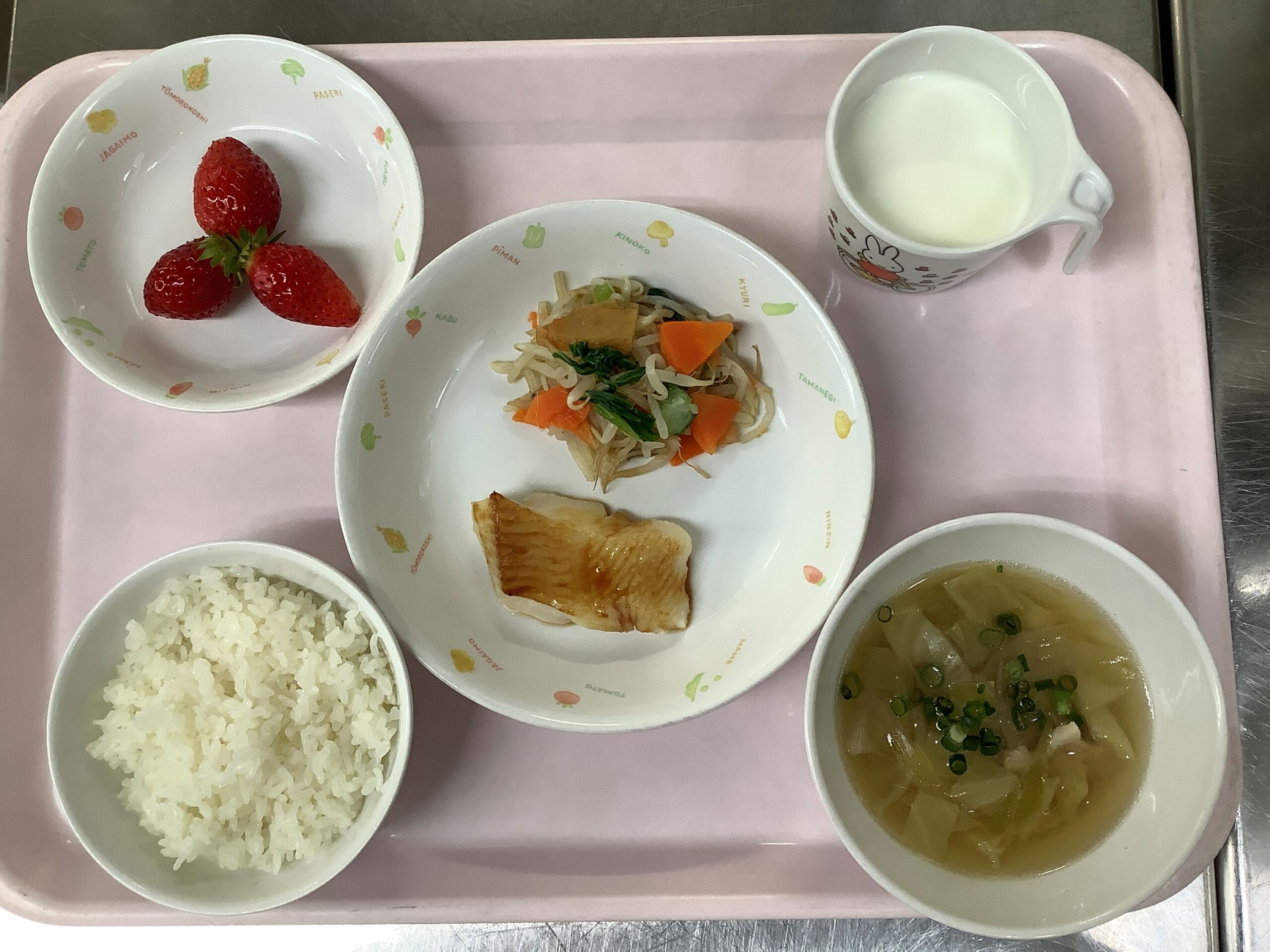 2月26日 ご飯 ムキカレイの照り焼き いちご